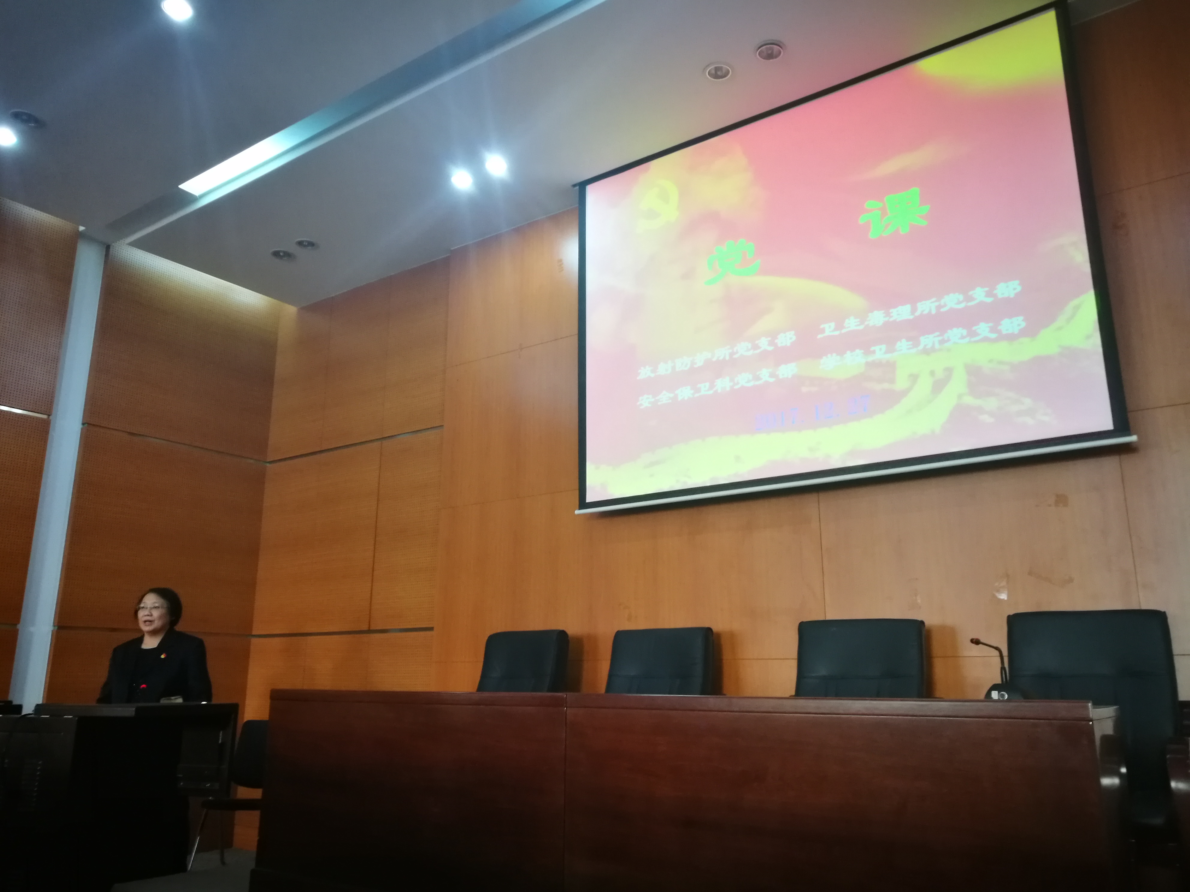 根据中心《关于认真学习宣传贯彻党的十九大精神的实施方案》,为进一步推进“学习宣贯十九大”宣传教育活动,2017年12月27日上午,市疾控中心卫生毒理所党支部与放射防护所党支部、安全保卫科党支部、学校卫生所党支部一道,开展了中心领导讲党课活动。